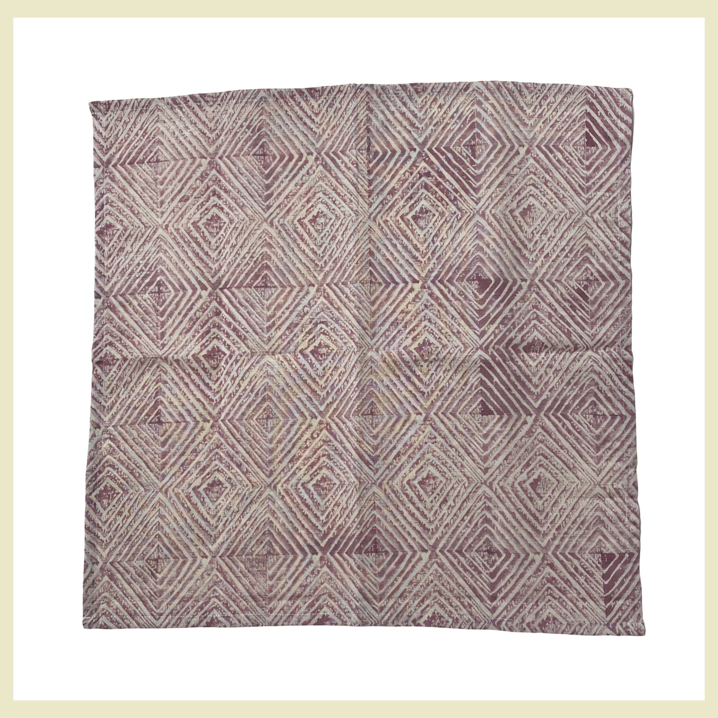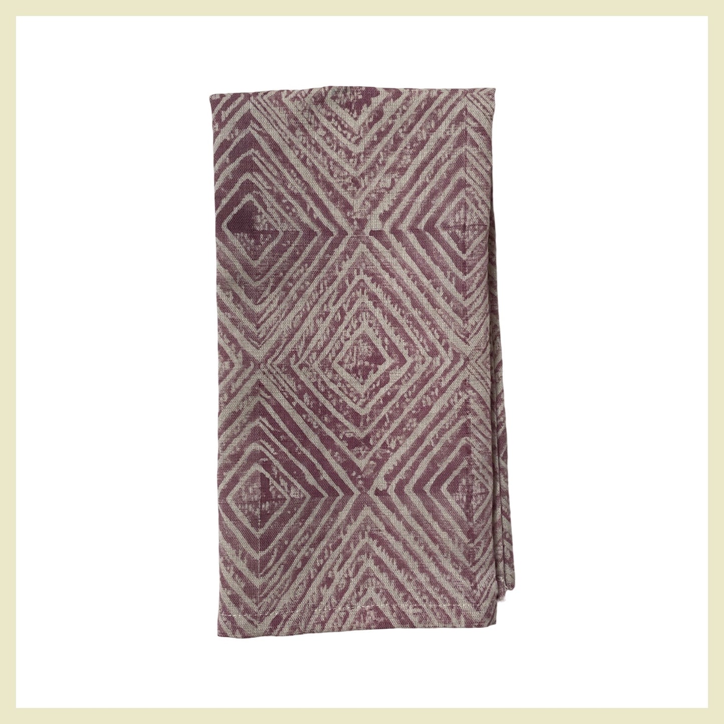 This unique set of plum-colored napkins features a geometric pattern influenced by the intricate diamond weave construction. Skilled artisans in India have hand block printed it onto a high-quality linen/cotton fabric.